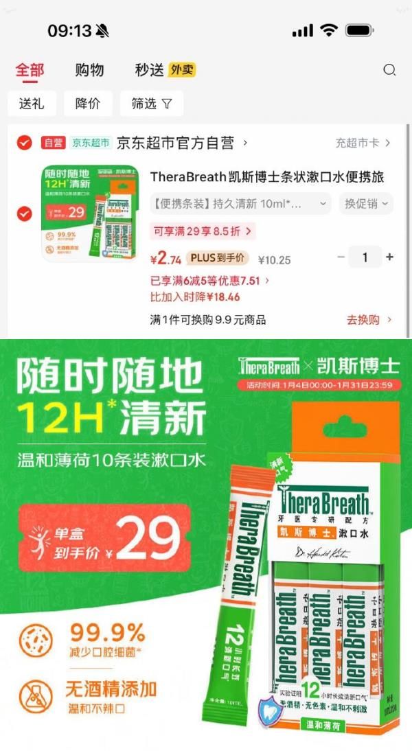 TheraBreath凯斯博士条状漱口水10ml*10条