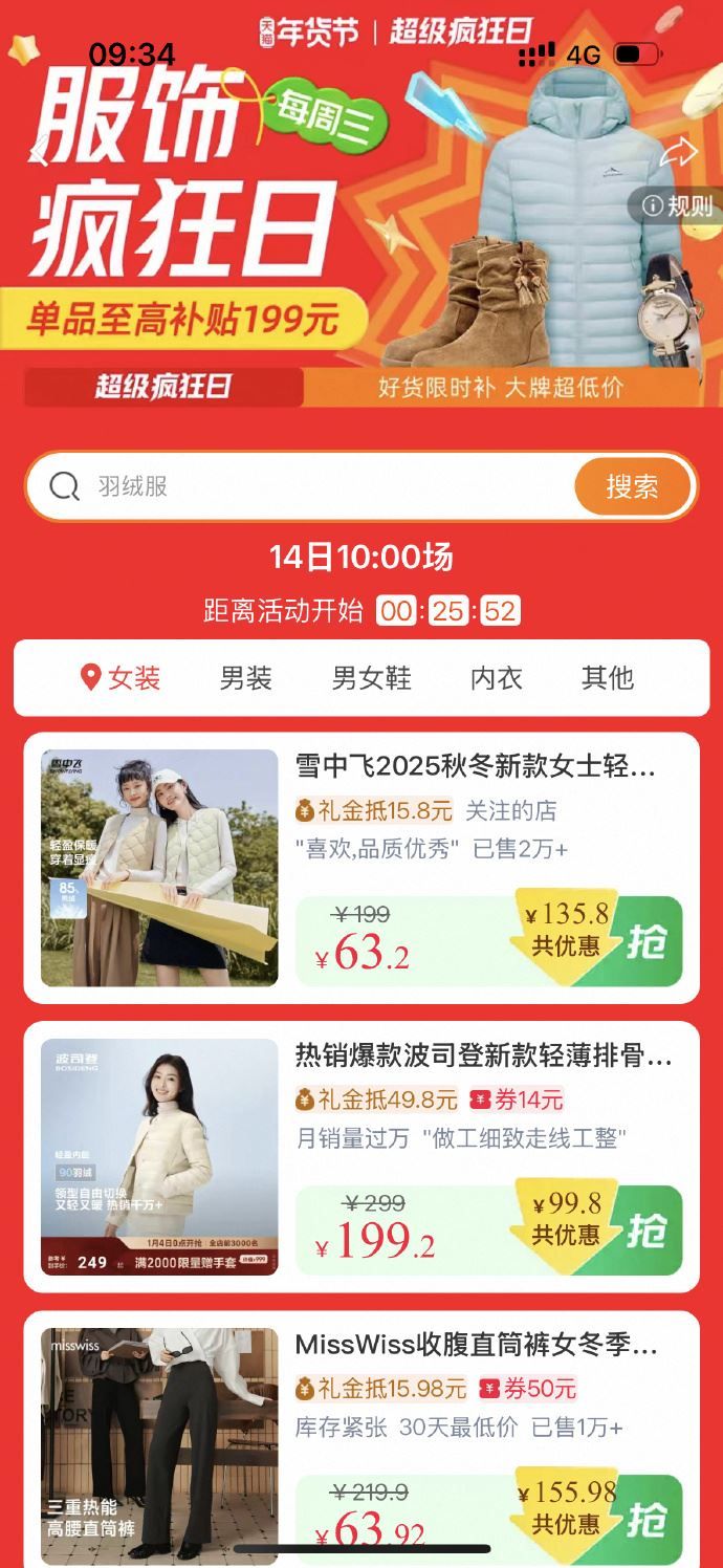 10点服饰疯狂日,单品最大补贴199元