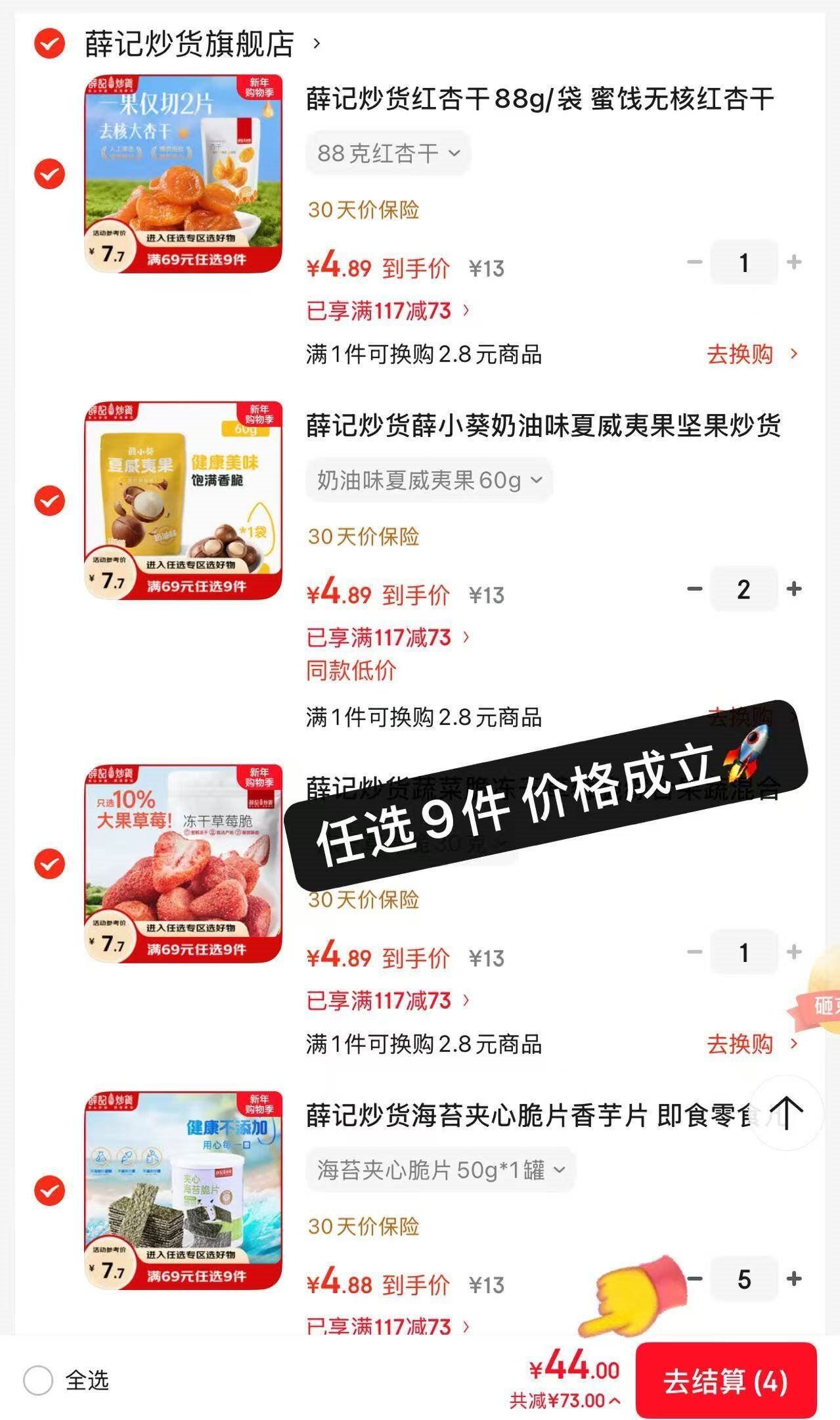 任选9件44亓,折4.8亓/件