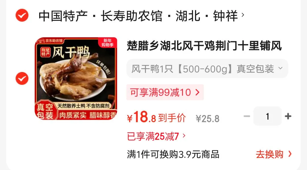 18.8元包邮 好价! 楚腊乡 湖北荆门 风干鸭 500-600g 紧实不腻 蒸炒炸都美味~好单发报员2026年01月21日 19:070举报 18.8元包邮 好价!楚腊乡 湖北荆门 风干鸭 500-600ghttps://u.jd.com/EakIfc2 紧实不腻 蒸炒炸都美味~复制文案