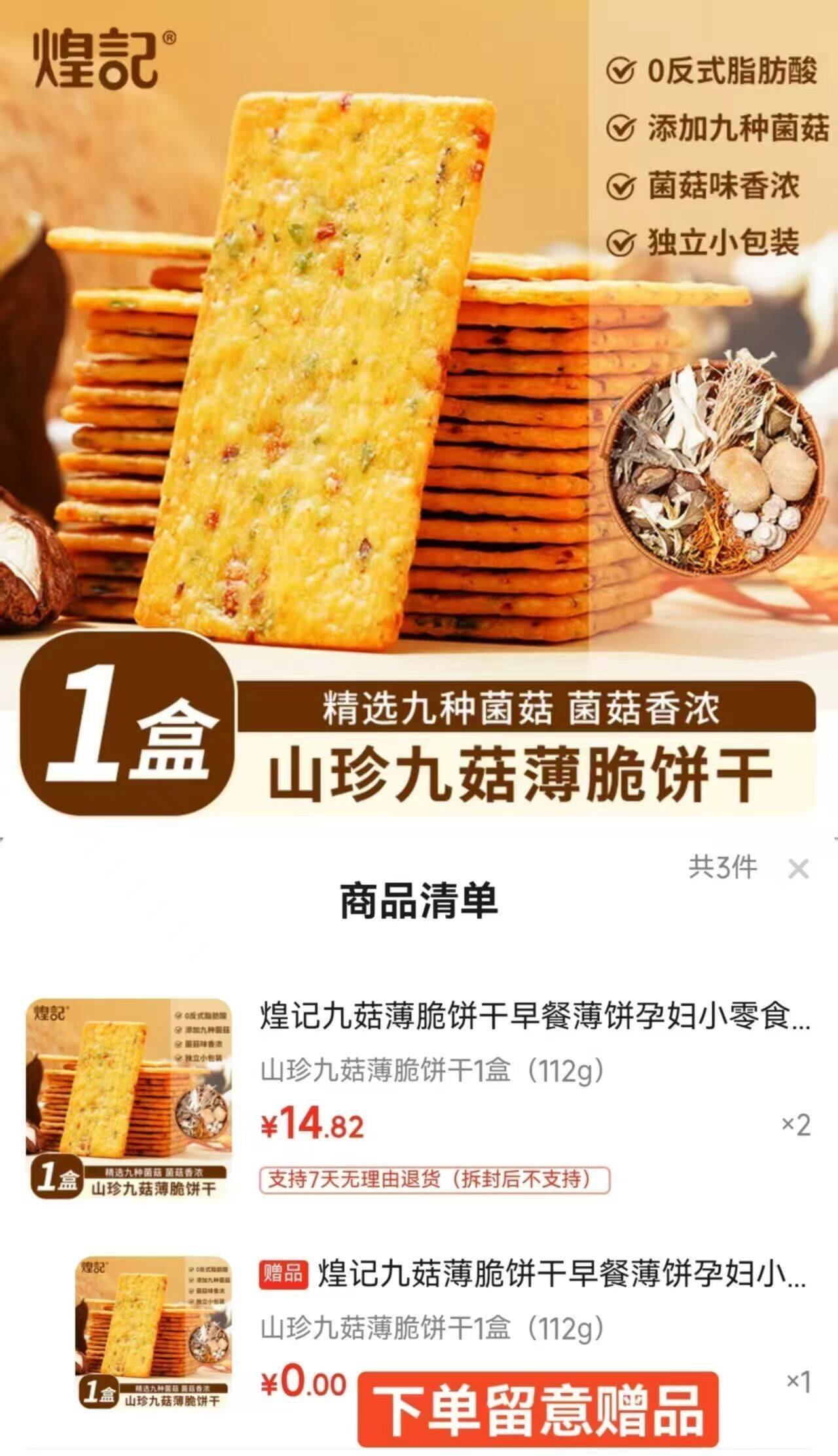 煌记 山珍九菇薄脆饼干112g