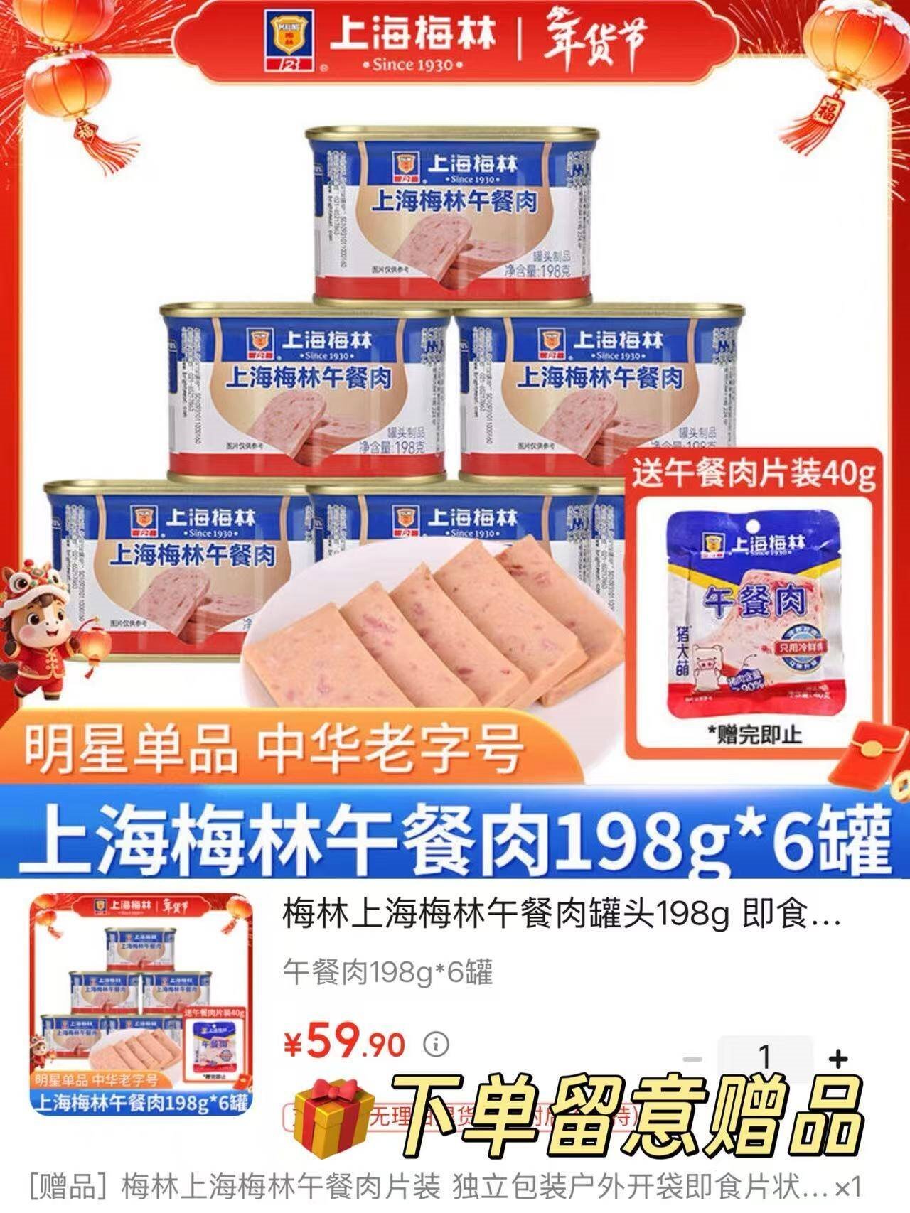 *随单赠片装午餐肉40g 划.算
