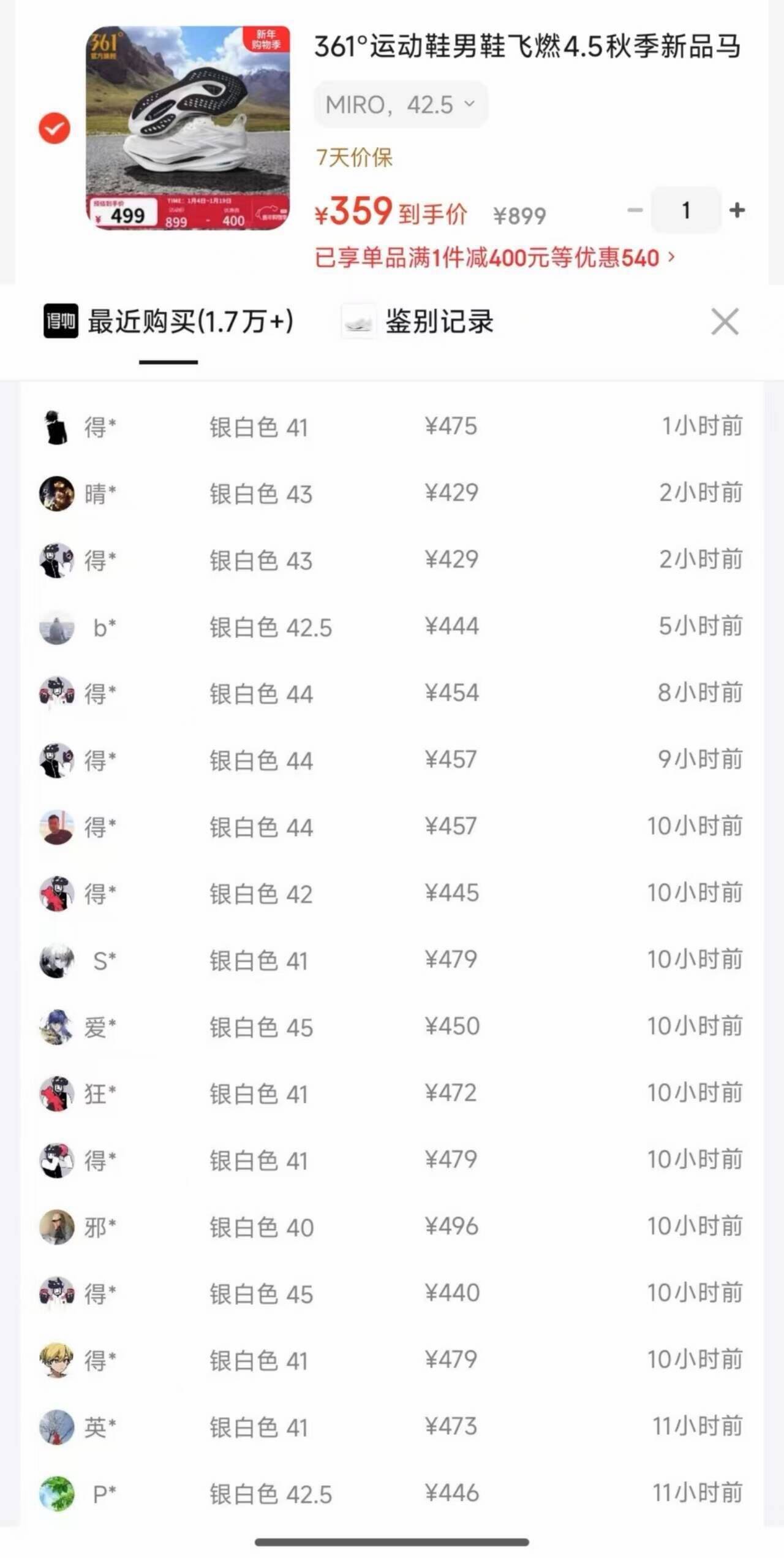 10点361飞燃4.5 购物金到手341 锝物457秒卖