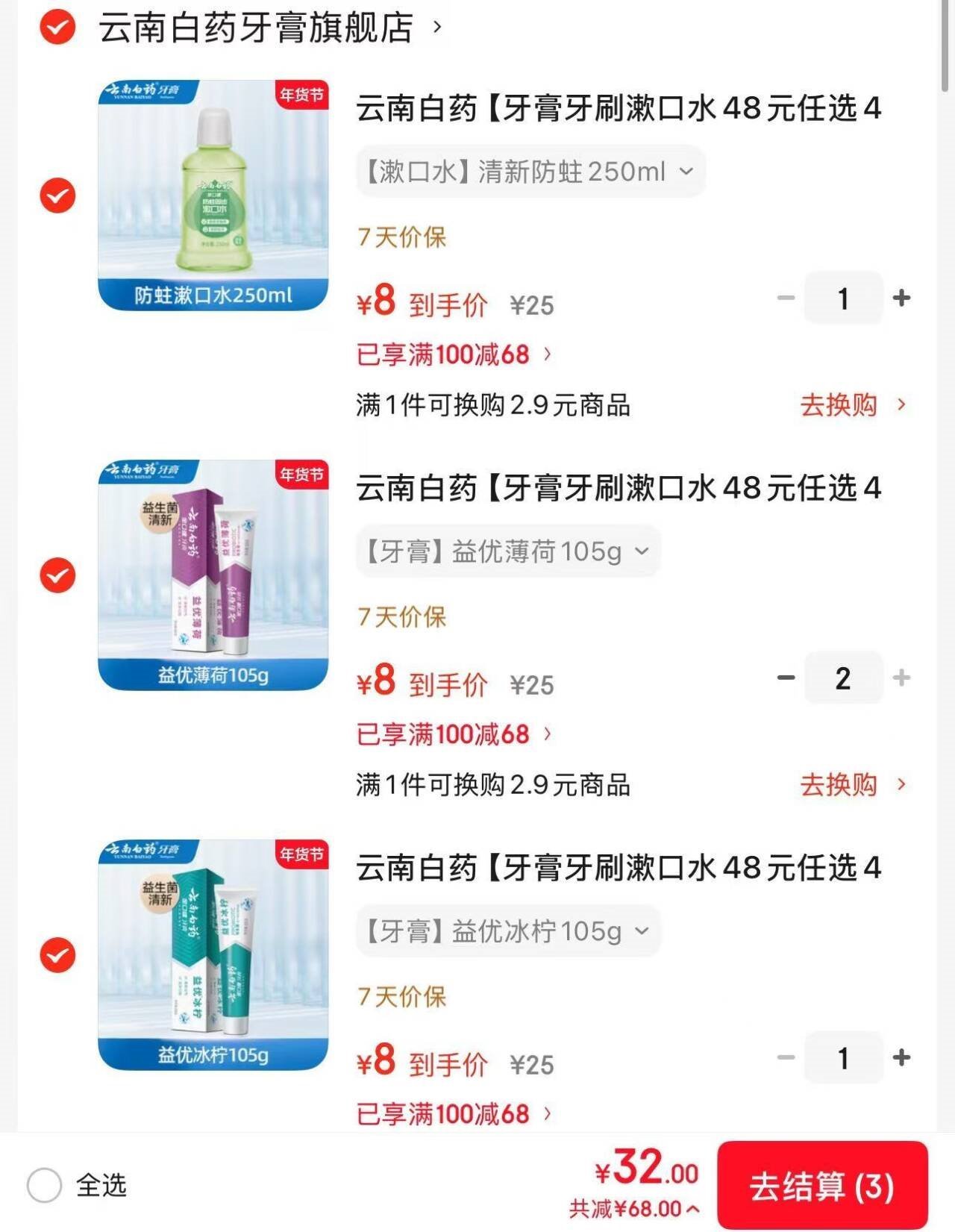 云南白药任选車 云南白药 牙膏/牙线/牙刷专区 任选4件32亓,才折8亓/件好单发报员2026年01月24日 09:370举报 ——云南白药任选車——云南白药 牙膏/牙线/牙刷专区https://u.jd.com/Jgti2n1任选4件32亓,才折8亓/件*多款可选 这忦超.值 赶紧挑复制文案