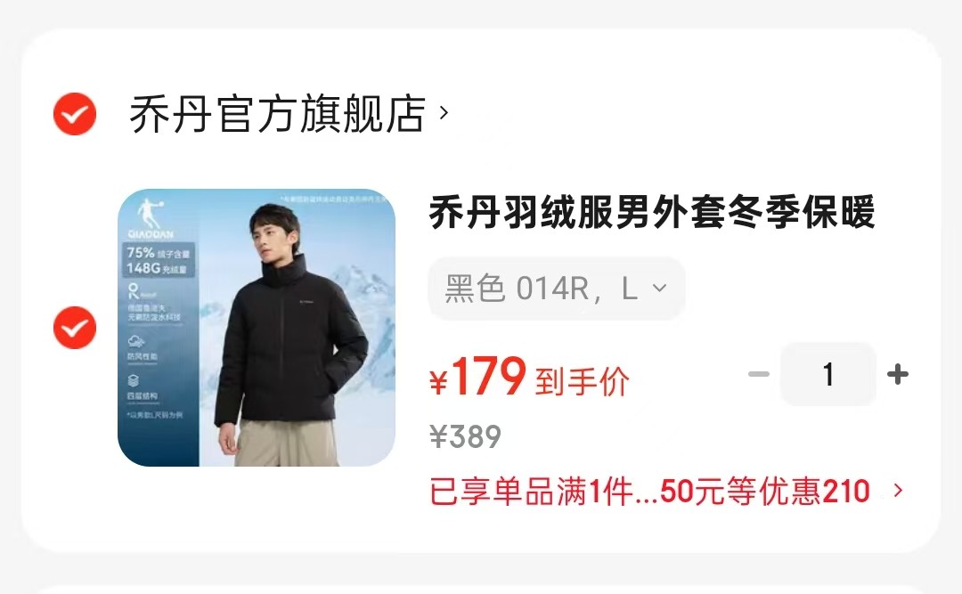 乔丹 羽绒服男外套运动休闲羽绒服【179】