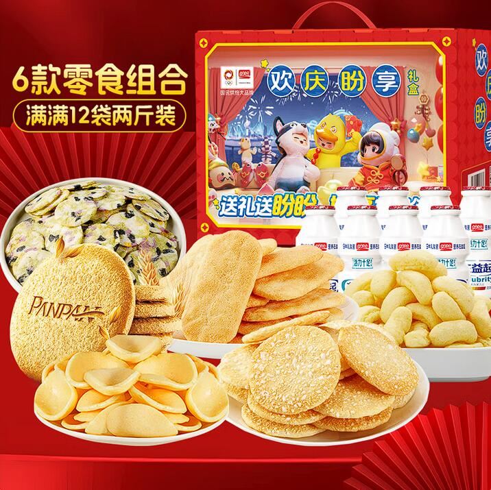 19.9元 6款零食12袋! 领补贴 盼盼 元梦之星欢庆盼享新年礼盒 1178g