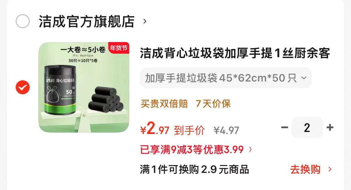 洁成 背心垃圾袋加厚手提1丝 45*62cm*50只,拍2件【5.9】