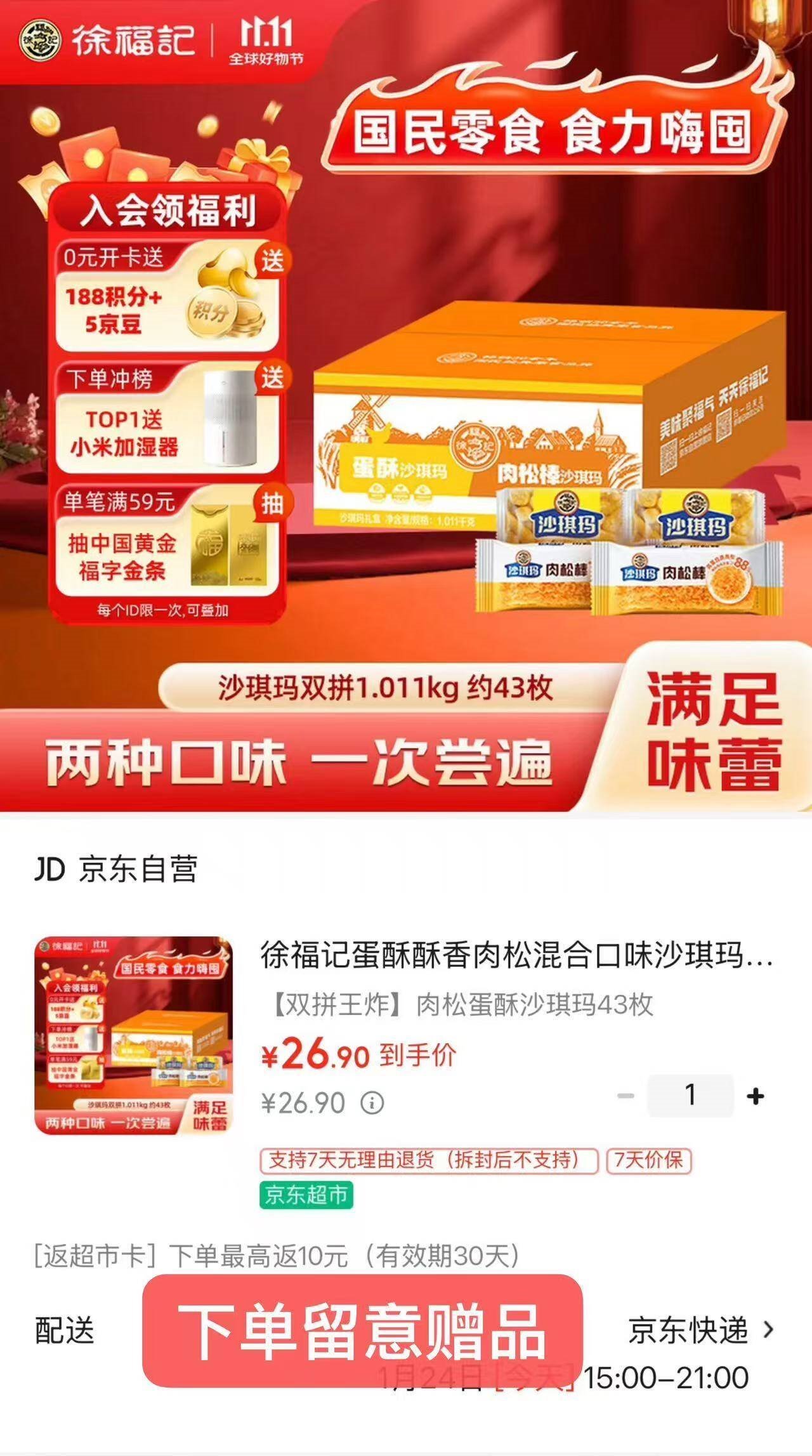 徐福记沙琪玛发車 徐福记 肉松棒沙琪玛1.011kg 26.9自营包邮,反10超.市卡 好单发报员 2026年01月24日 16:01 0 举报 ——徐福记沙琪玛发車——徐福记 肉松棒沙琪玛1.011kghttps://u.jd.com/J6daO2g26.9自营包邮,反10超.市卡*低至16.9 香糯好吃 送礼也行 复制文案
