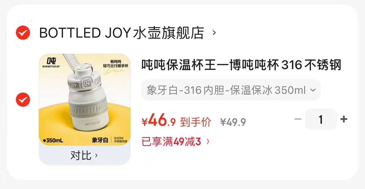 吨吨保温杯 王一博吨吨杯316不锈钢 保温保冰350ml【46.9】