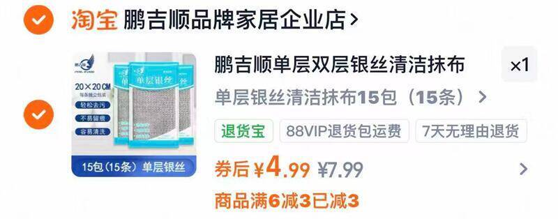 第1个选项4元.9,看需 鹏吉顺単层银丝清洁抹布15包好单发报员2026年01月24日 17:450举报 第1个选项4元.9,看需鹏吉顺単层银丝清洁抹布15包https://m.tb.cn/h.7Lgt9To复制文案