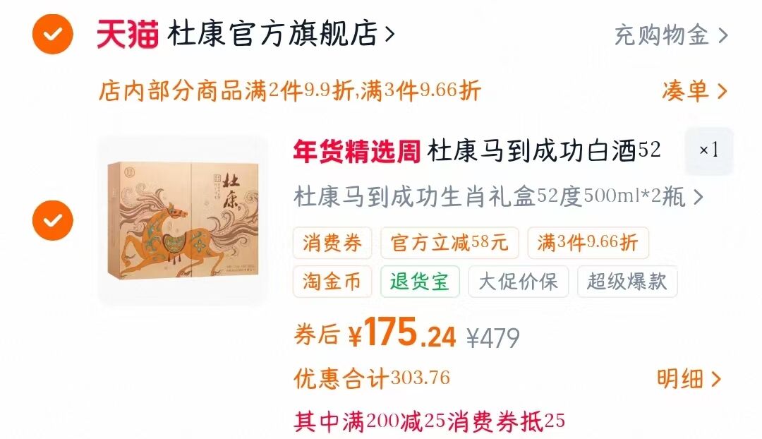 杜康官旗.马到成功白酒礼盒装500ml*2瓶