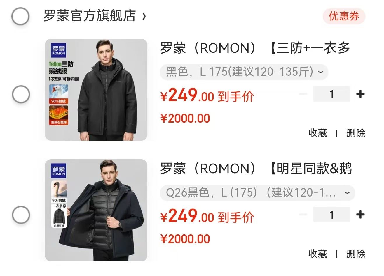 罗蒙 (ROMON)明星同款&鹅绒&一衣多穿羽绒服【249】