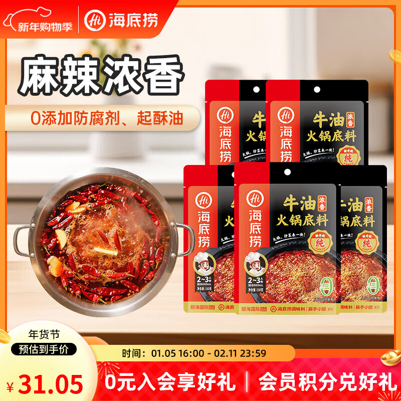 海底捞 浓香牛油5包/醇香牛油5包/青椒牛油5包 150g*5袋
