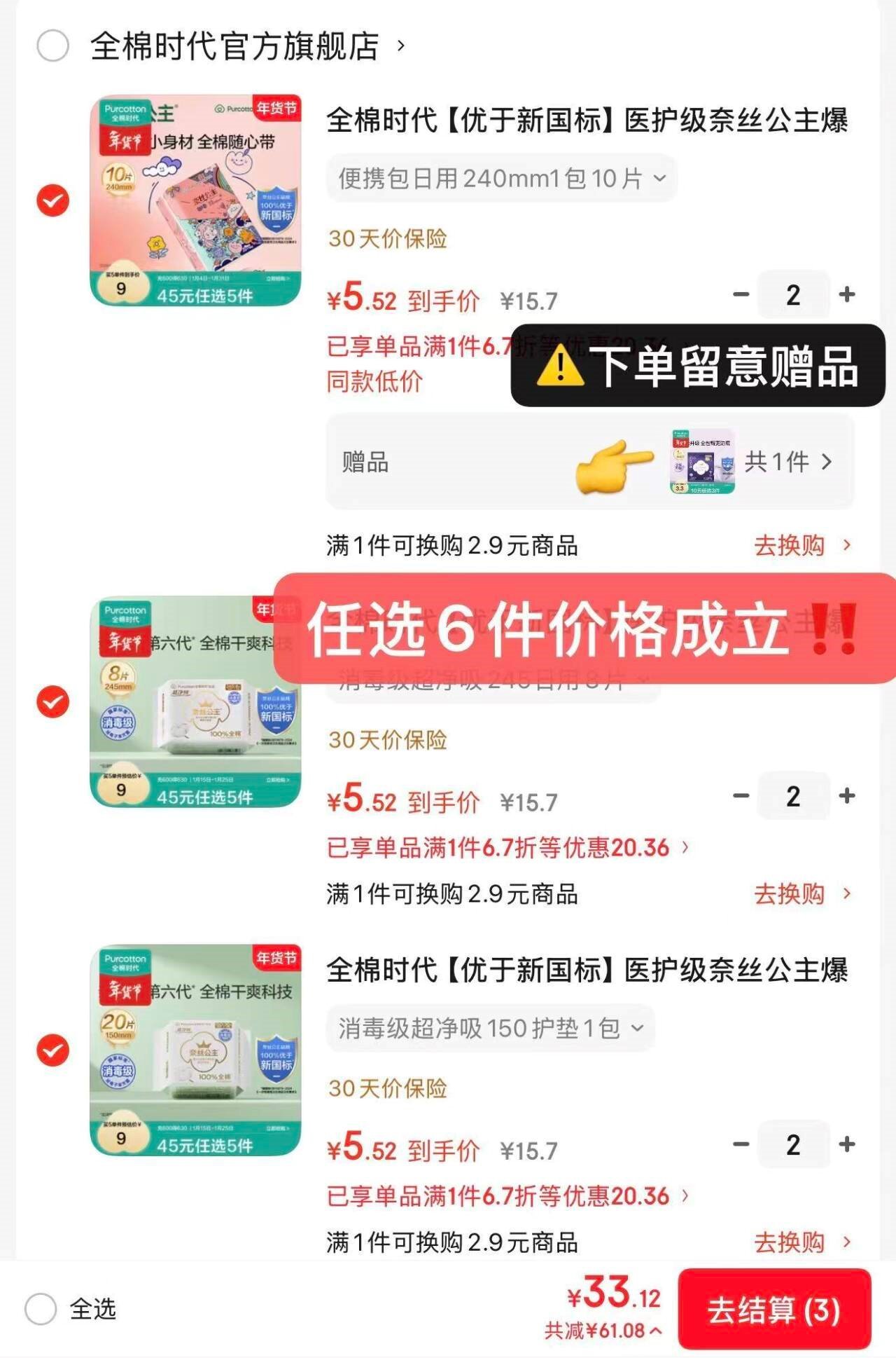 任选6件33.1亓,赠安睡裤*1