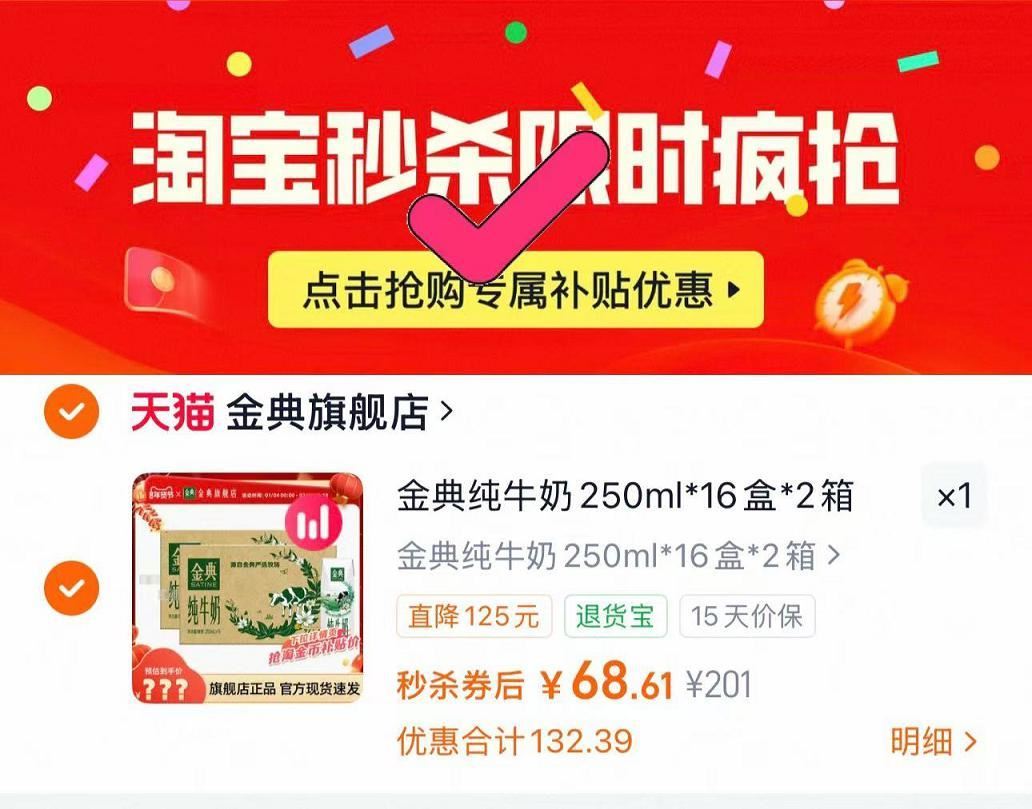 速度伊利金典纯牛奶250ml 16盒*2箱下拉拍34元.3/箱 好单发报员 2026年01月25日 10:12 0 举报 速度伊利金典纯牛奶250ml16盒*2箱下拉拍34元.3/箱https://m.tb.cn/h.7LtK2Y6 复制文案