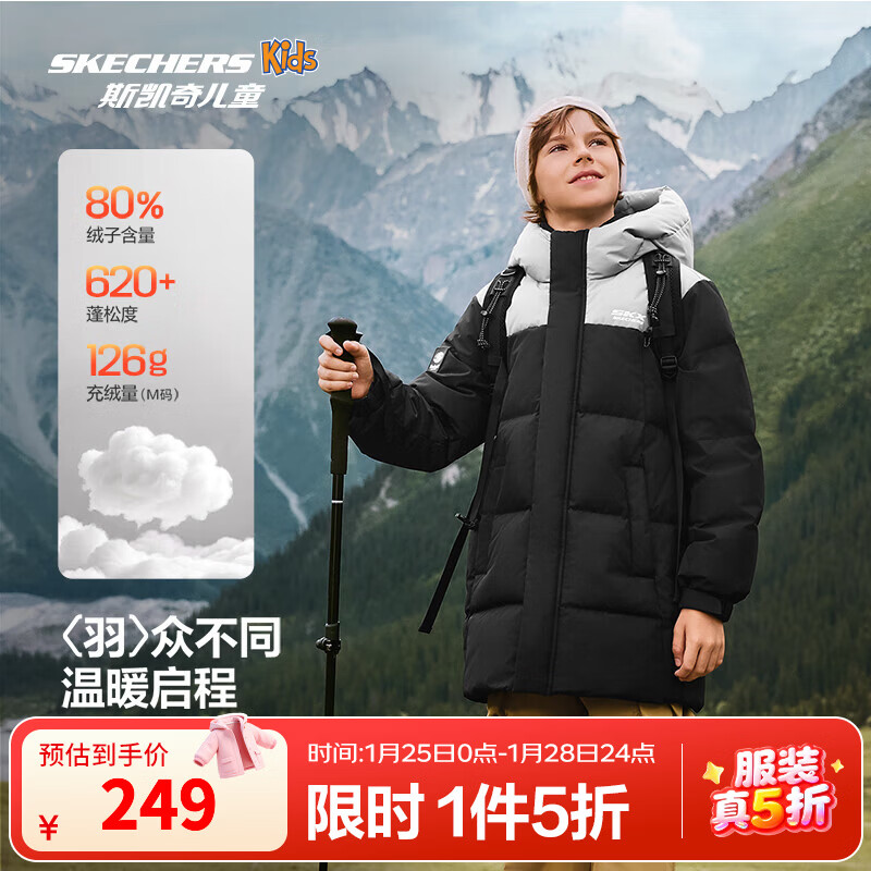 斯凯奇 儿童中长款保暖羽绒服