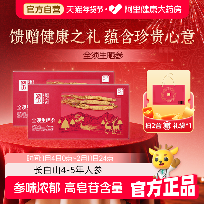 千年珍长白山全须生晒参20g