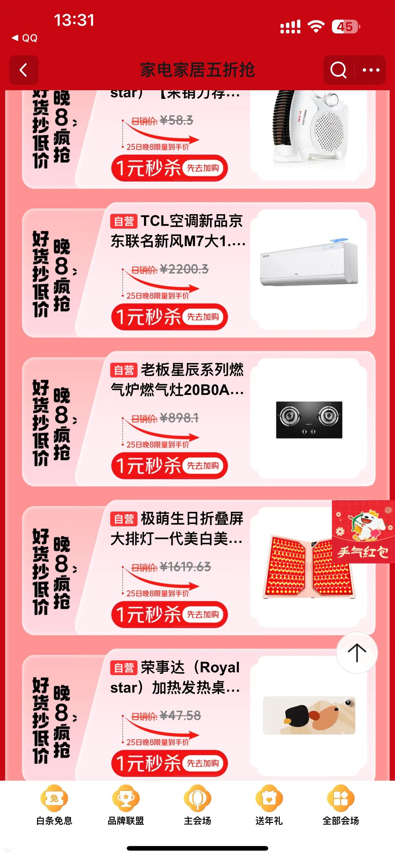20点开抢 页面很多1元秒