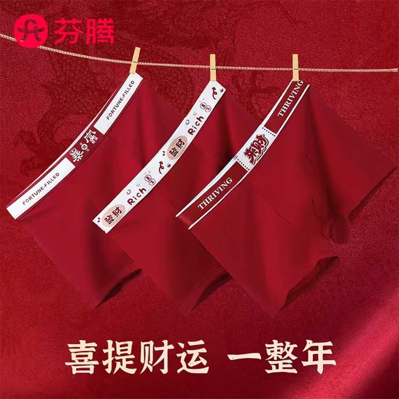 芬腾 男10A抗菌红色3条礼盒