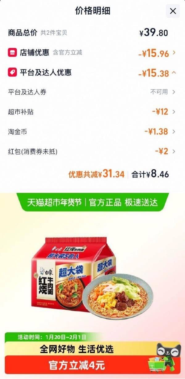 部分地区有补贴6 白象新经典超大袋红烧牛肉面148g*5袋选项 淘金币页面搜索商品标题加购包邮好单发报员2026年01月25日 23:300举报 部分地区有补贴6白象新经典超大袋红烧牛肉面148g*5袋选项淘金币页面搜索商品标题加购包邮 用金币 2福袋,拍2件【8.46】 https://m.tb.cn/h.7LCLZS7复制文案