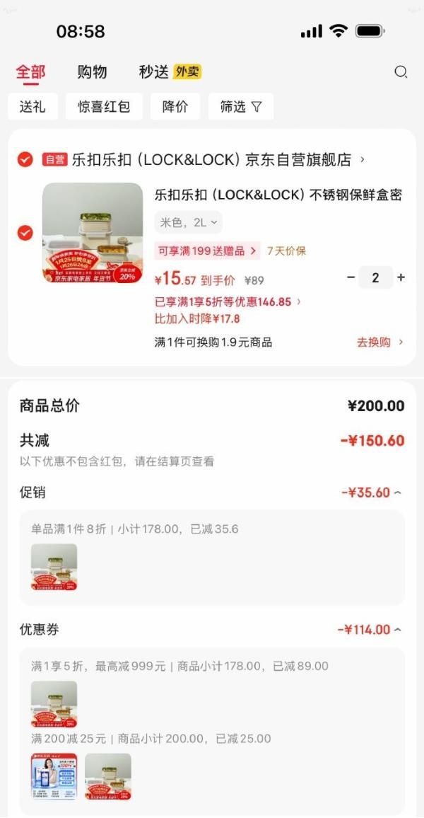 乐扣乐扣(LOCK&LOCK)不锈钢保鲜盒2L米色