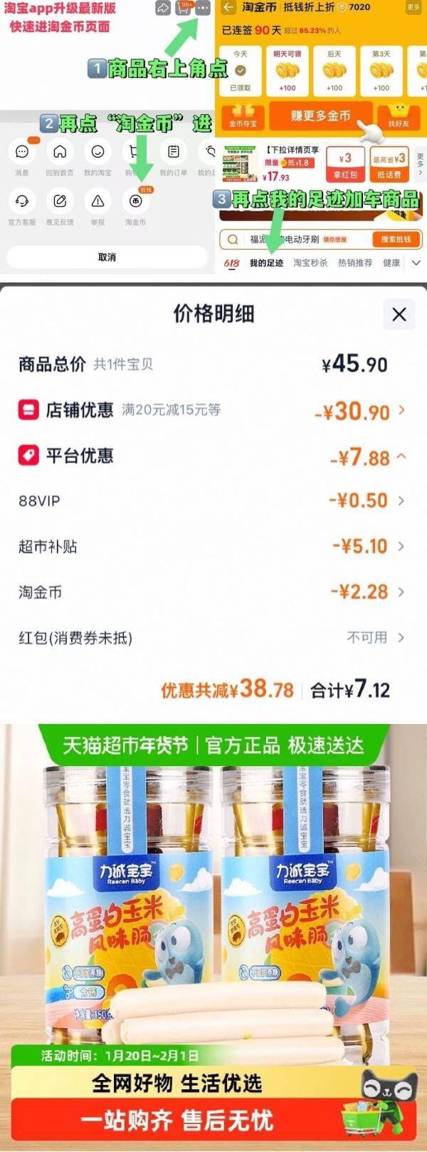 力诚宝宝玉米肠150g*2罐 淘金币页面我的足迹加购 拍1件vip 金币 7.12 好单发报员 2026年01月26日 10:09 0 举报 力诚宝宝玉米肠150g*2罐淘金币页面我的足迹加购拍1件vip 金币【7.12】 https://m.tb.cn/h.7Km4Z4r 复制文案