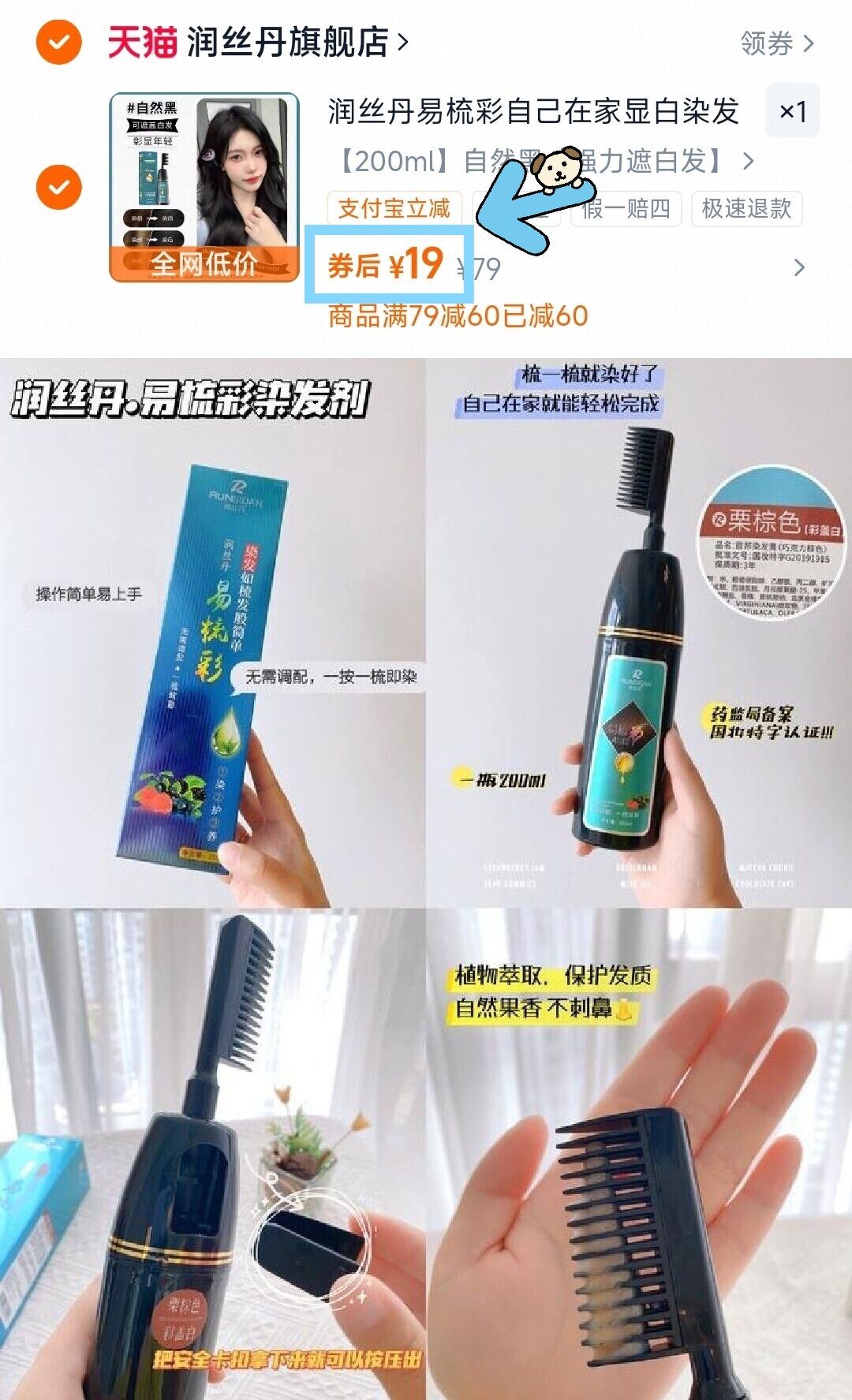 润丝丹天然植物纯染发剂200ml
