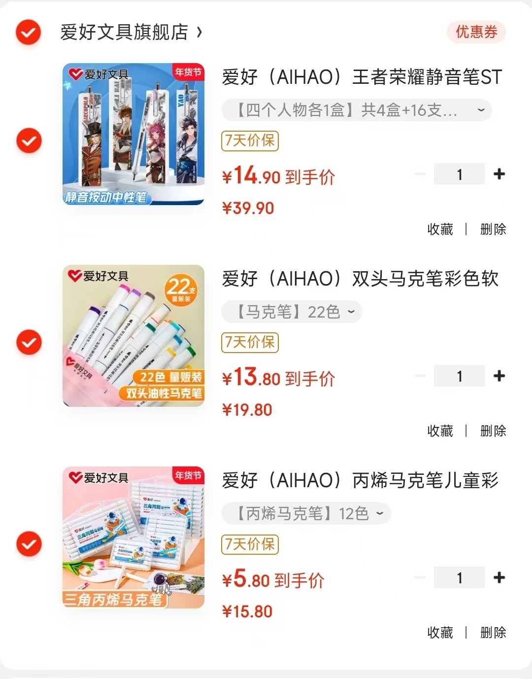 爱好 王者荣耀静音笔4盒 16支芯 【14.9】