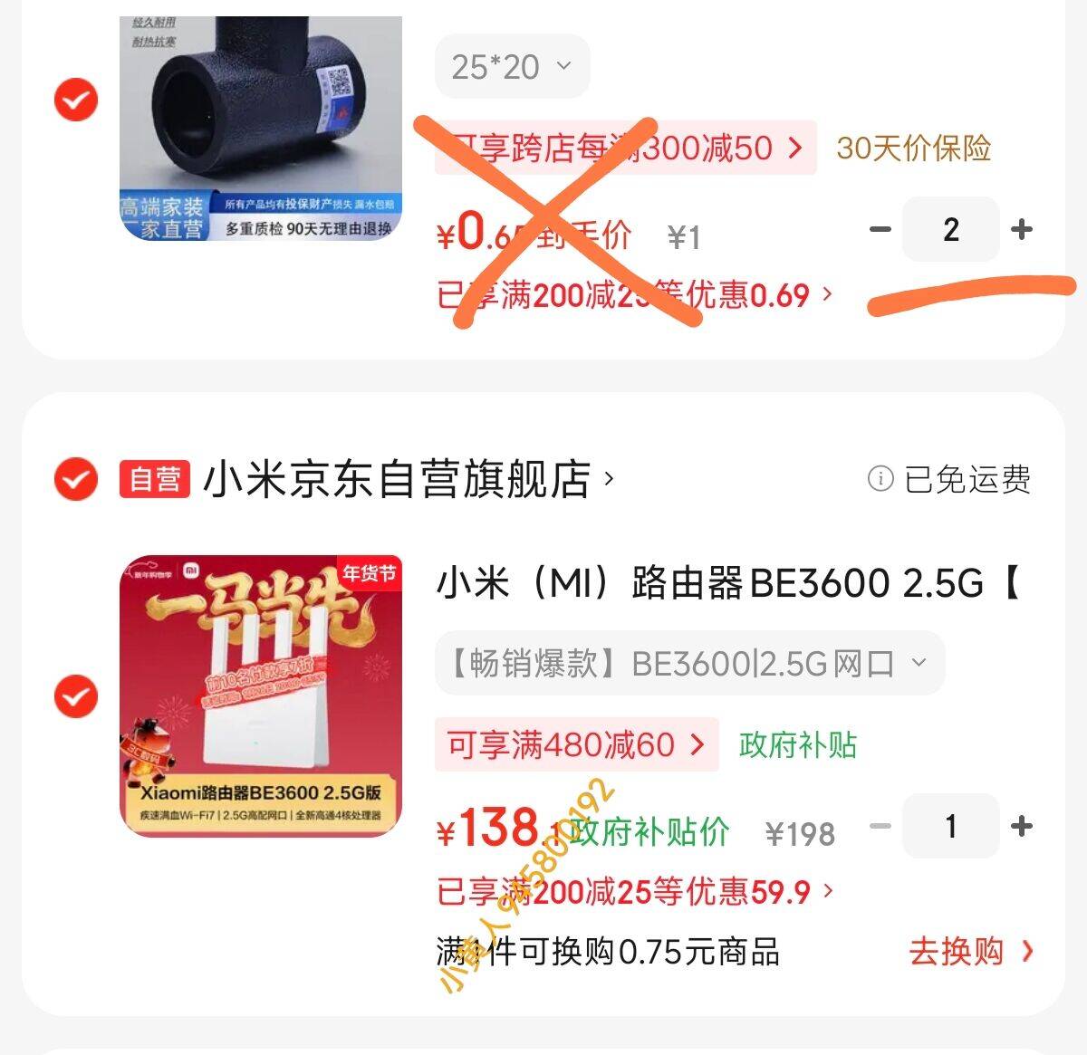 凑单加车两件付完退