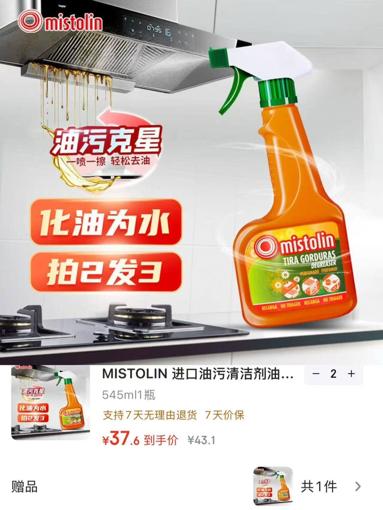 Mistolin终.于来啦 Mistolin 油污清洁剂545ml 买1件32.1亓,买2件75.2亓好单发报员2026年01月26日 19:450举报 ——Mistolin终.于来啦——Mistolin 油污清洁剂545mlhttps://u.jd.com/Jgb9gKG买1件32.1亓,买2件75.2亓*买2件再赠1瓶 才折25亓/瓶*原装进口 一擦一擦 轻松去污复制文案