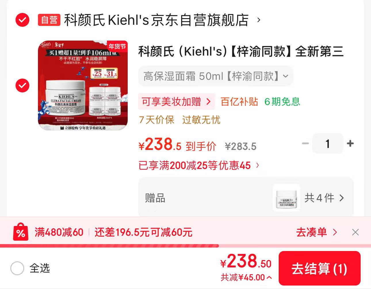 赠科颜氏同款面霜14ml*4个