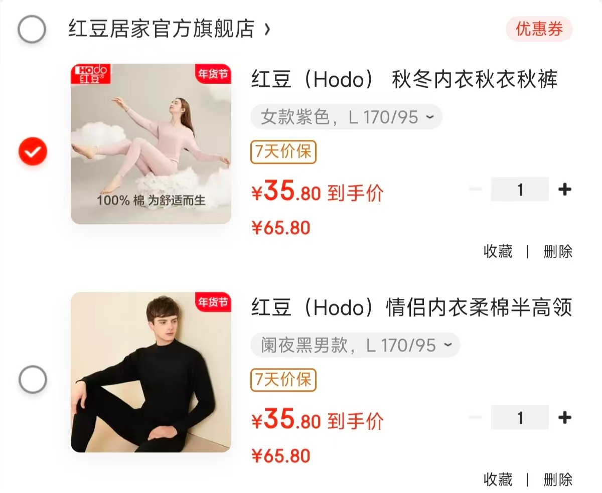 红豆 (Hodo)情侣内衣柔棉半高领套装【35.8】