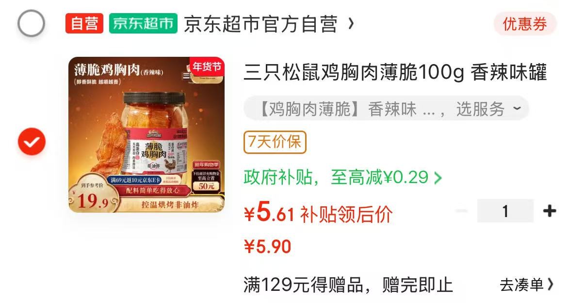 三只松鼠 鸡胸肉薄脆100g【5.9】