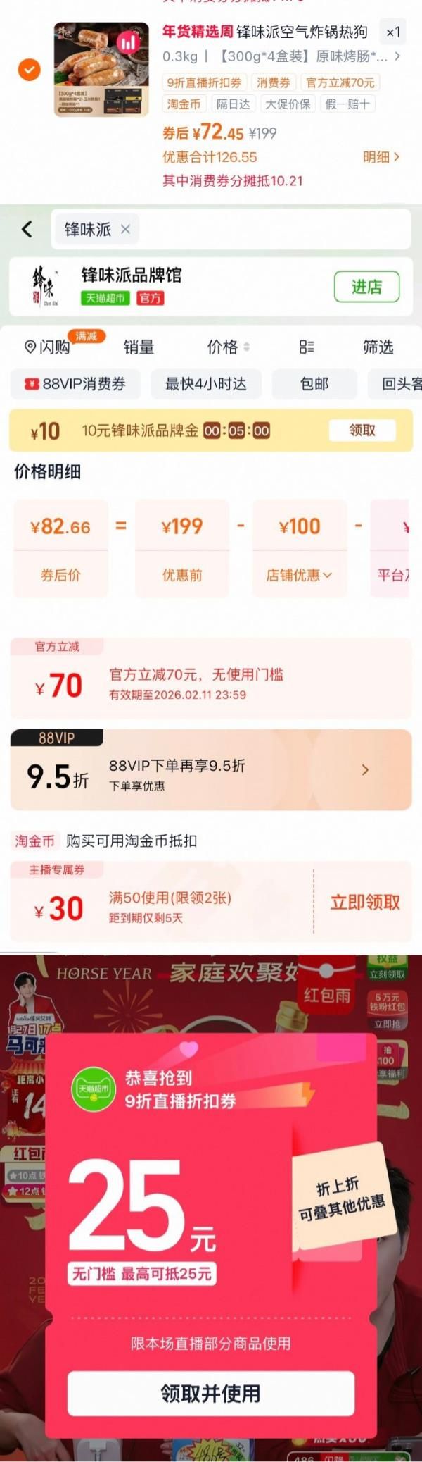 ③合理凑单用200-25红包或消费券