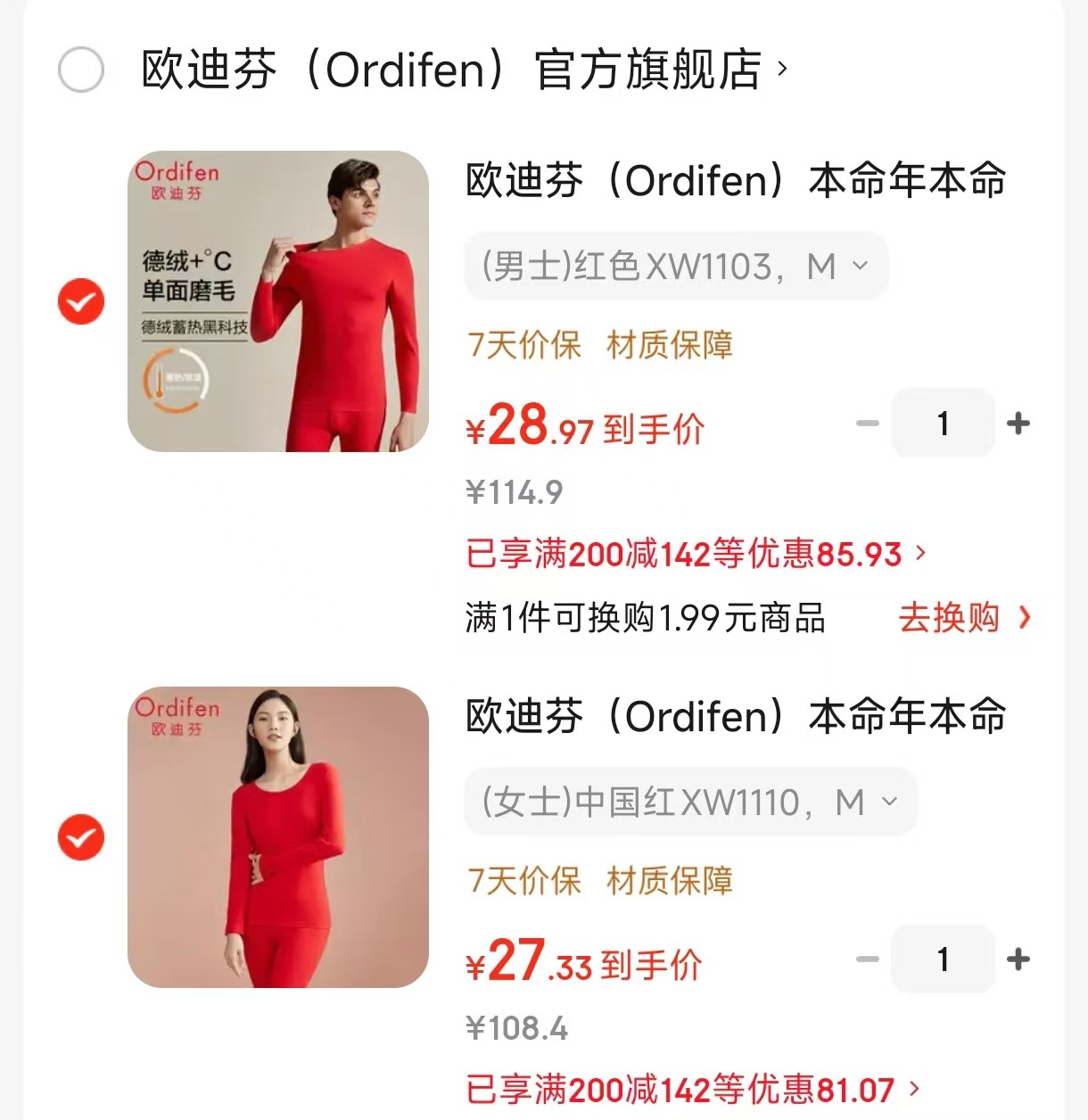 欧迪芬 (Ordifen)本命年本命年中国红保暖套装,任选2件【56】