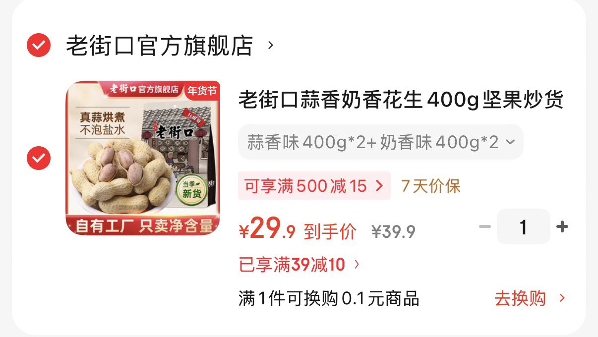 老街口花生组合400g*4袋 拍下29.9亓 折7.5亓/袋好单发报员2026年01月27日 11:460举报 老街口花生组合400g*4袋拍下29.9亓 折7.5亓/袋https://u.jd.com/JGz1nRK 复制文案