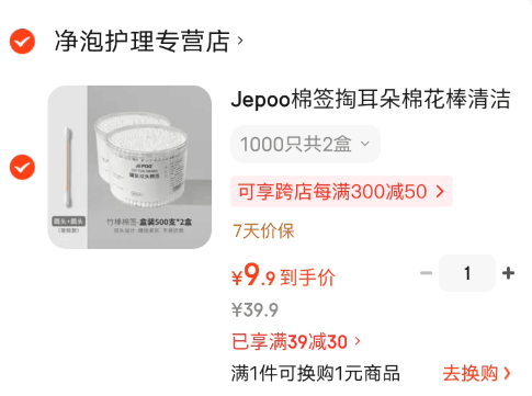 4.9亓/盒速度,拍下9.9亓 Jepoo 掏耳朵棉花棒共2盒好单发报员2026年01月27日 12:150举报 4.9亓/盒速度,拍下9.9亓Jepoo 掏耳朵棉花棒共2盒https://u.jd.com/JgzEJMV复制文案