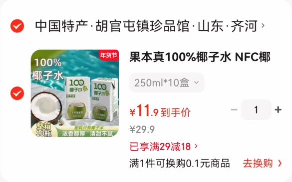1.1亓/盒速!11.9亓10盒 领个虹包到手更低 果本真椰子水250ml*10盒好单发报员2026年01月27日 12:240举报 1.1亓/盒速!11.9亓10盒领个虹包到手更低https://u.jd.com/JGz3HUZ 果本真椰子水250ml*10盒https://u.jd.com/J6z3qfR复制文案