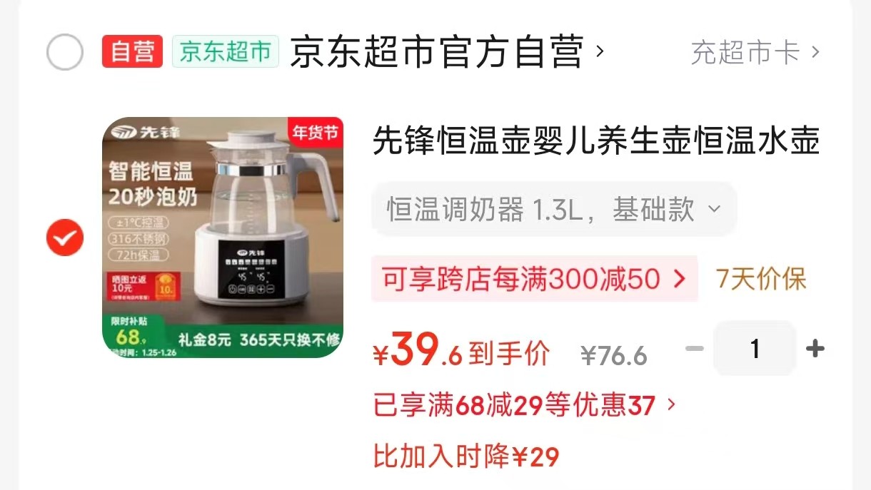 先锋 恒温壶婴儿养生壶1.3L,拍下【39】