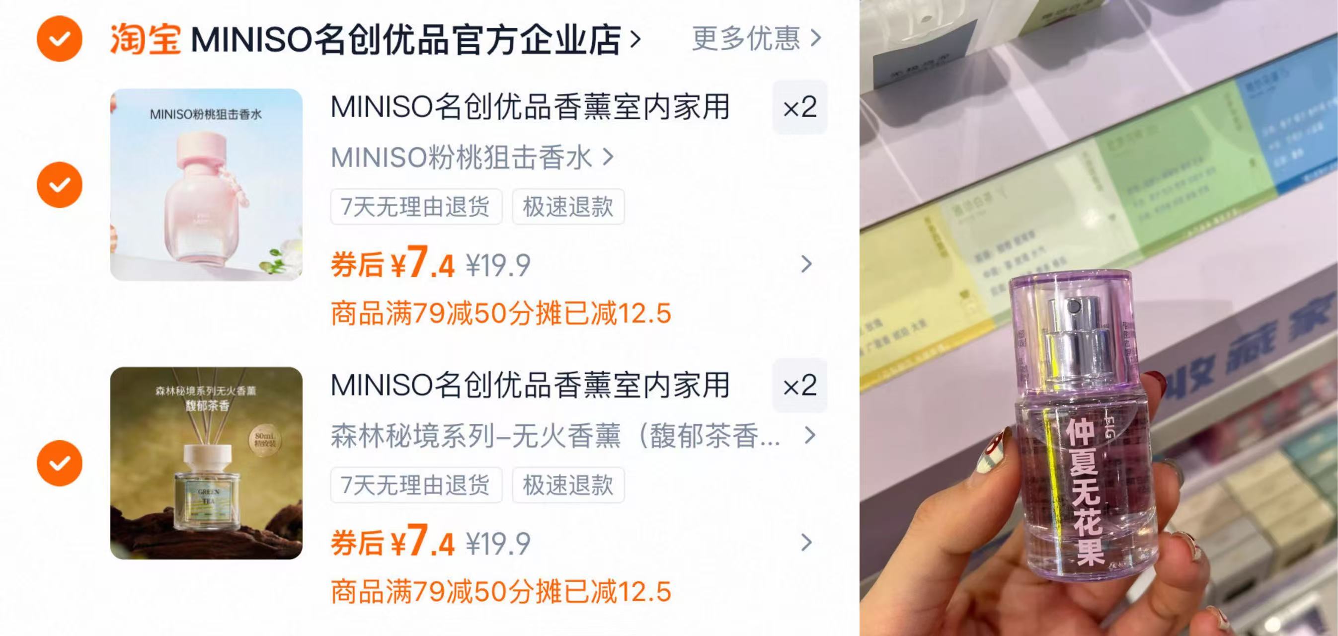 名创优品无火香薰喷雾任选 超15 任挑拍4件29元.6 7.4/件!! 线下1件要29.9亓好单发报员2026年01月27日 15:260举报 名创优品无火香薰喷雾任选超15 任挑拍4件29元.67.4/件!! 线下1件要29.9亓https://m.tb.cn/h.7KqXOej复制文案