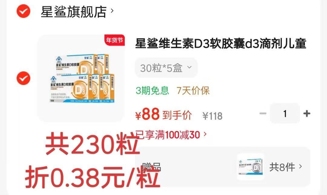 0.38元/粒!拍下88元!