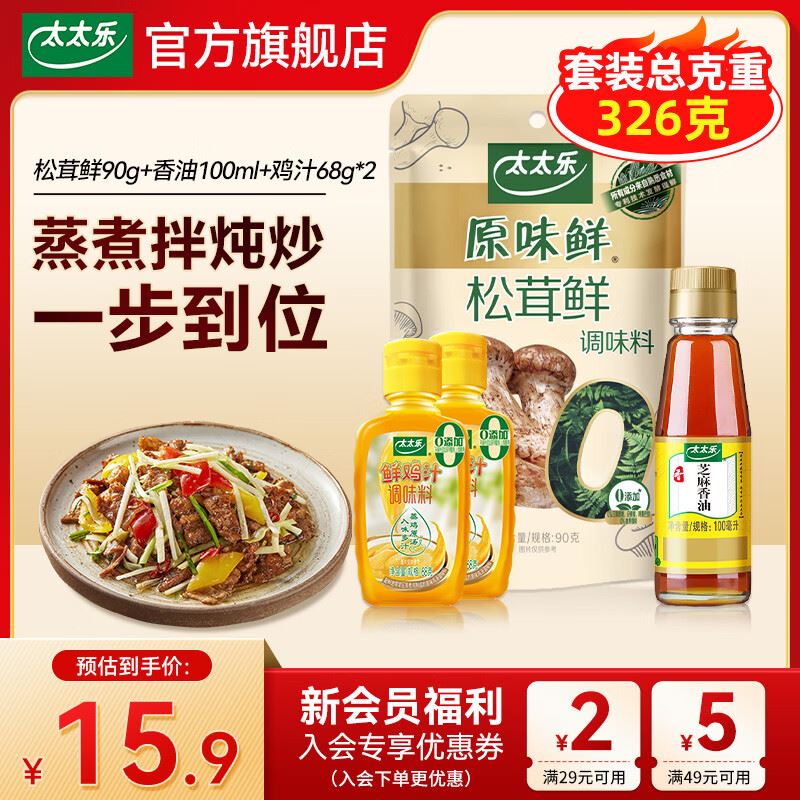 2.7/件!太太乐 厨房调味4件套共326g 拍下 10.9元 得松茸鲜 香油 鸡汁 好单发报员 2026年01月27日 16:51 0 举报 2.7/件!太太乐 厨房调味4件套共326g拍下【10.9元】得松茸鲜 香油 鸡汁https://u.jd.com/J189Rvz 复制文案