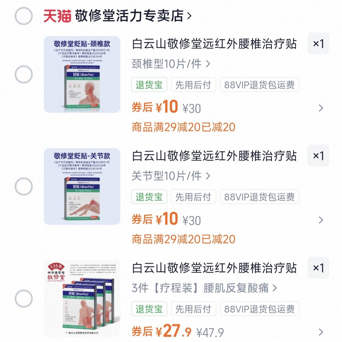 敬修堂远红外治疗贴 颈椎型/腰椎型/关节型10片 拍一盒10元;三盒27.9元 好单发报员 2026年01月27日 19:35 0 举报 敬修堂远红外治疗贴颈椎型/腰椎型/关节型10片拍一盒10元;三盒27.9元https://m.tb.cn/h.7KvSuXY 复制文案