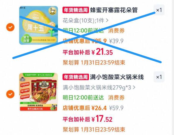 2、凑单商品加购 1件 一起付款然后退掉凑单