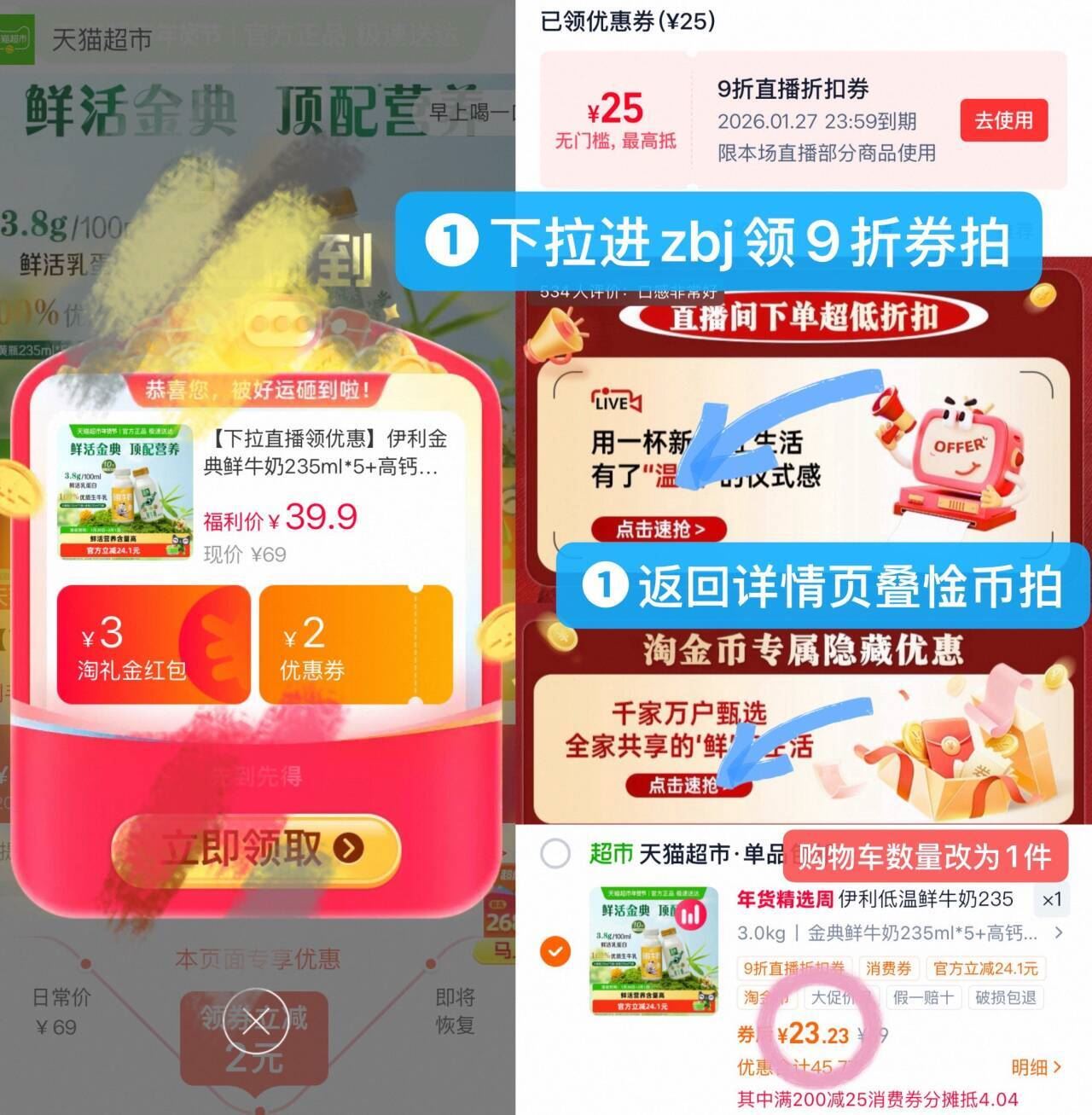 金典鲜奶*5 小黄瓶*5元23