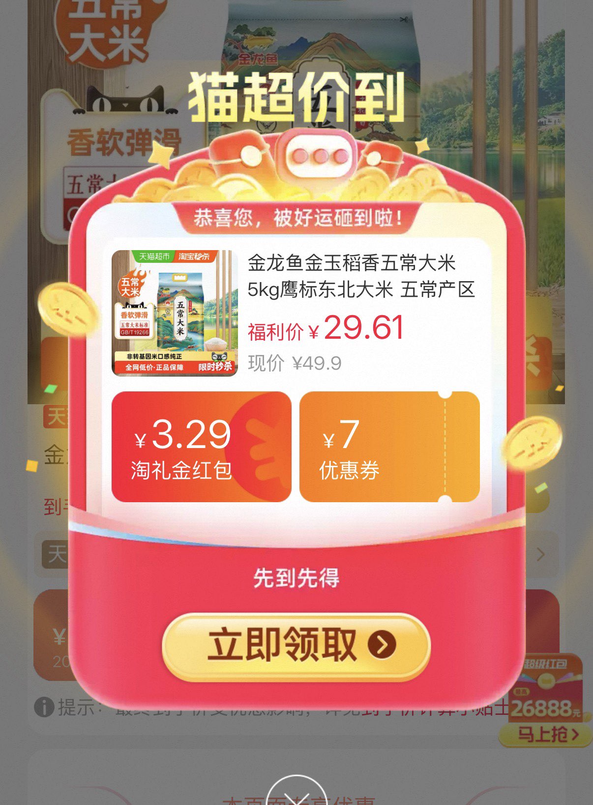 金龙鱼金玉稻香五常大米5kg,领李金