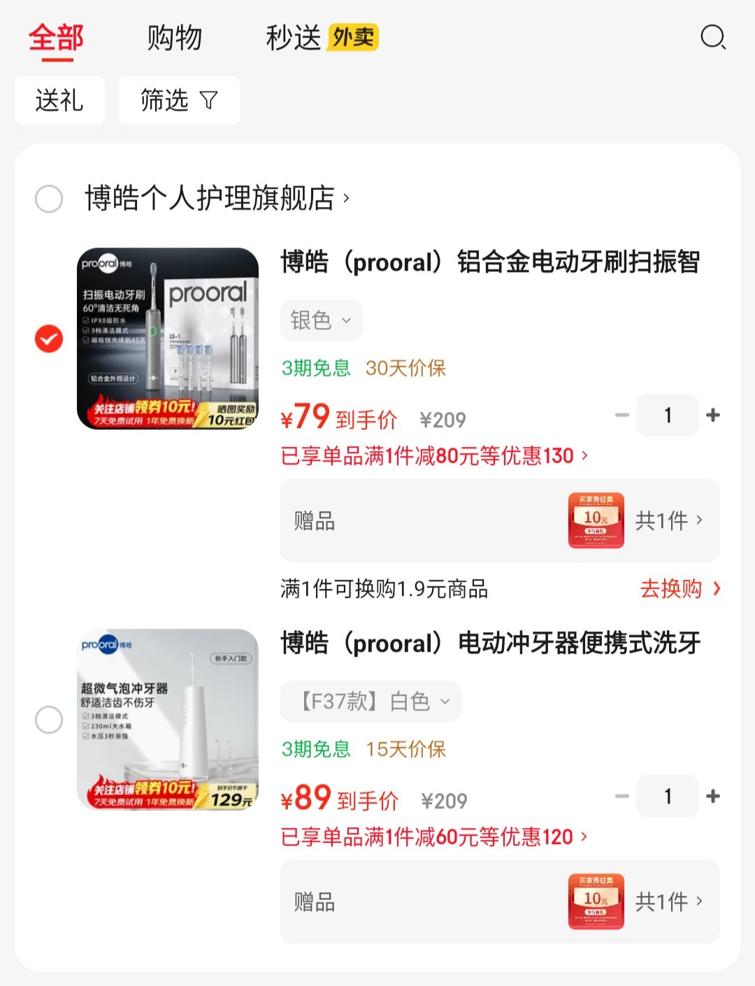 博皓 (prooral)电动牙刷铝合金 LS-1 银【89】晒图返10元