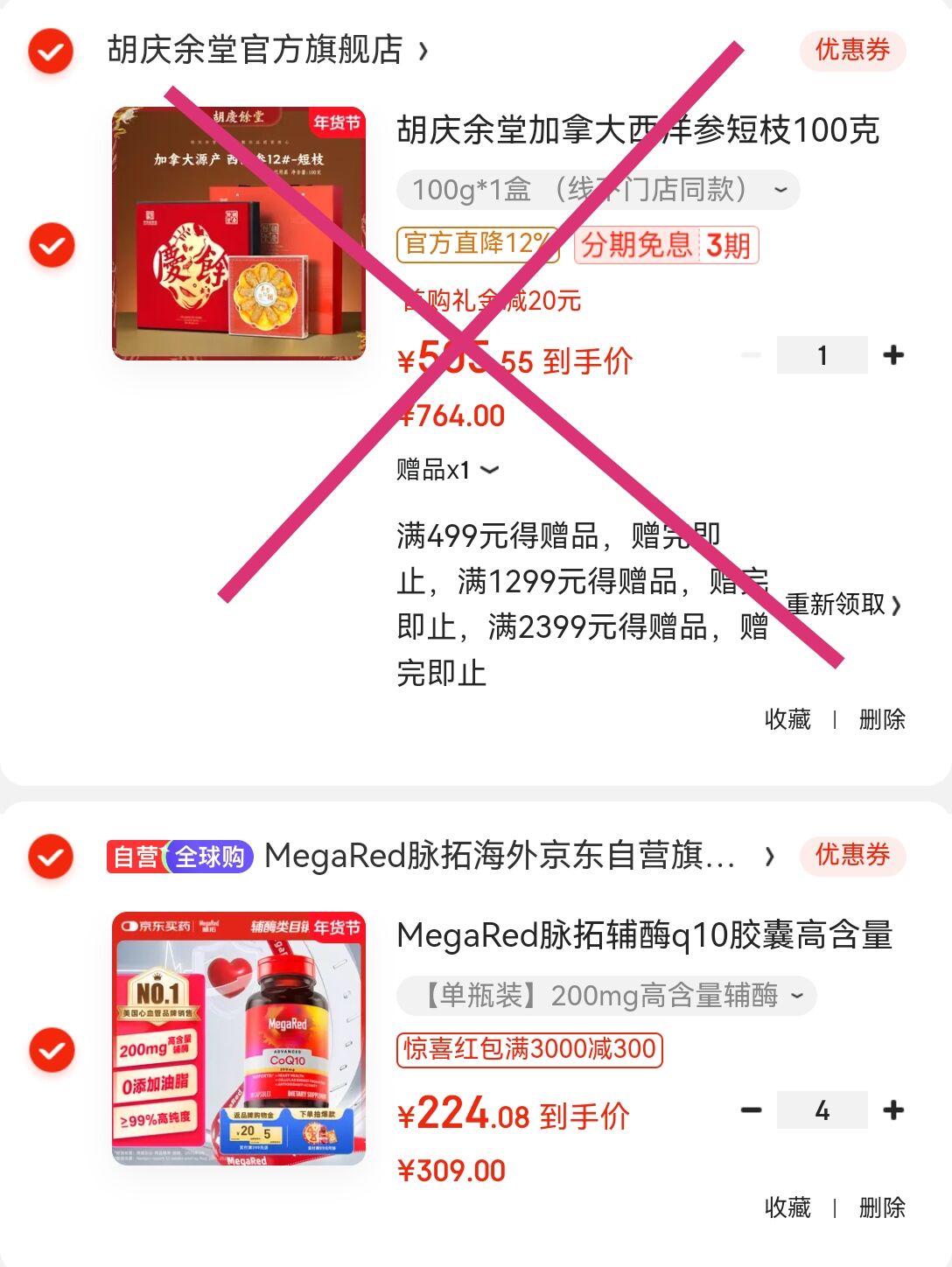 凑单任选1件付后退