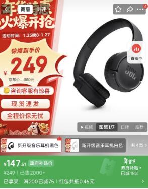 JBL TUNE 520BT头戴式蓝牙无线音乐耳机【147】