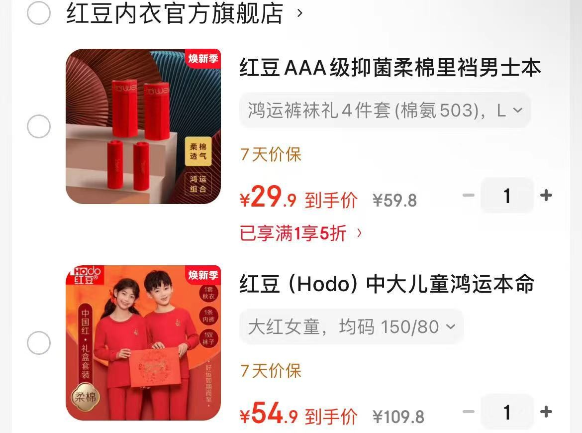 红豆 Hodo中大儿童鸿运本命年保暖内衣套装【54.9】